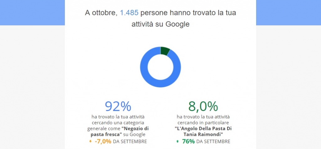 il 92% stava CERCANDO qualcosa nella categoria generale “Negozio di Pasta Fresca” e ha TROVATO la scheda del Negozio…(dato in leggero calo – 7% da Settembre)
